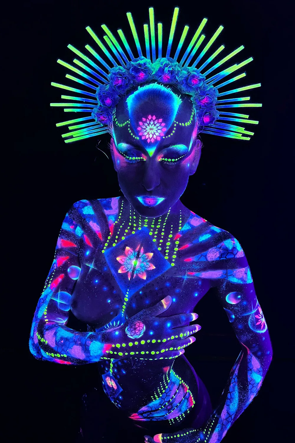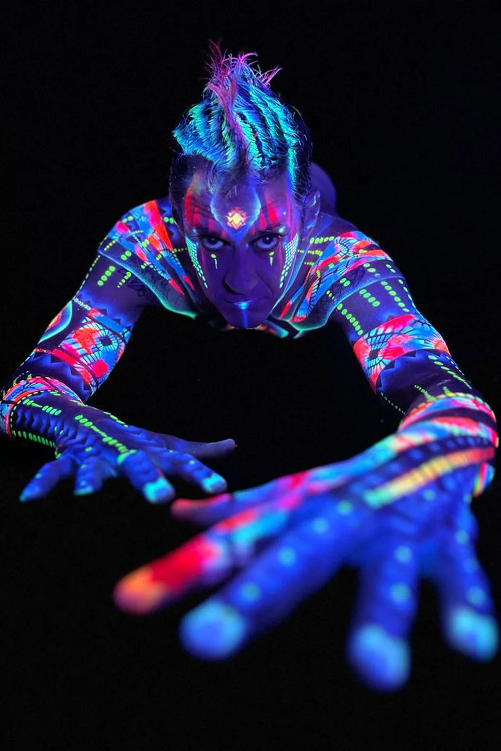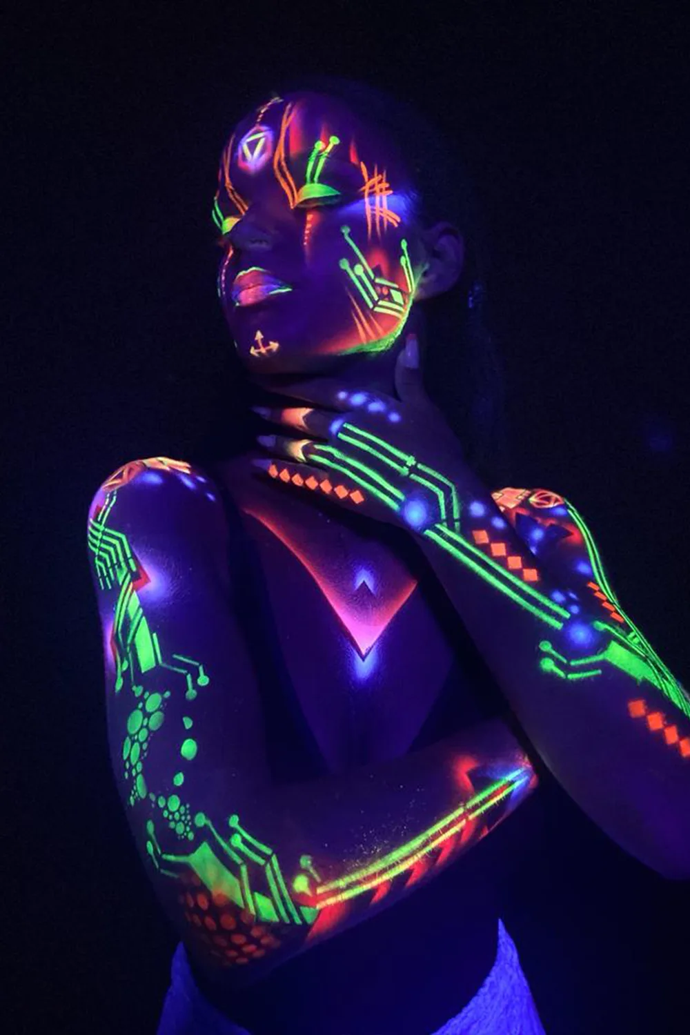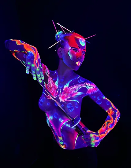 Le maquillage Néon offre une palette extraordinaire de couleurs fluorescentes réagissant à la lumière noire (Black Light) pour une immersion totale dans un monde futuriste et onirique !
