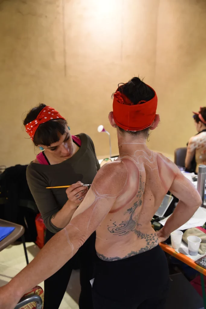 Entre vous et moi, c’est un moment intime qui vous plonge, en tant que modèle, dans une bulle artistique de bienveillance où les pinceaux vous caressent, les pochoirs et l’airbrush vous cajolent, pour sublimer vos formes parfaites afin de devenir une Créature, une Toile vivante !