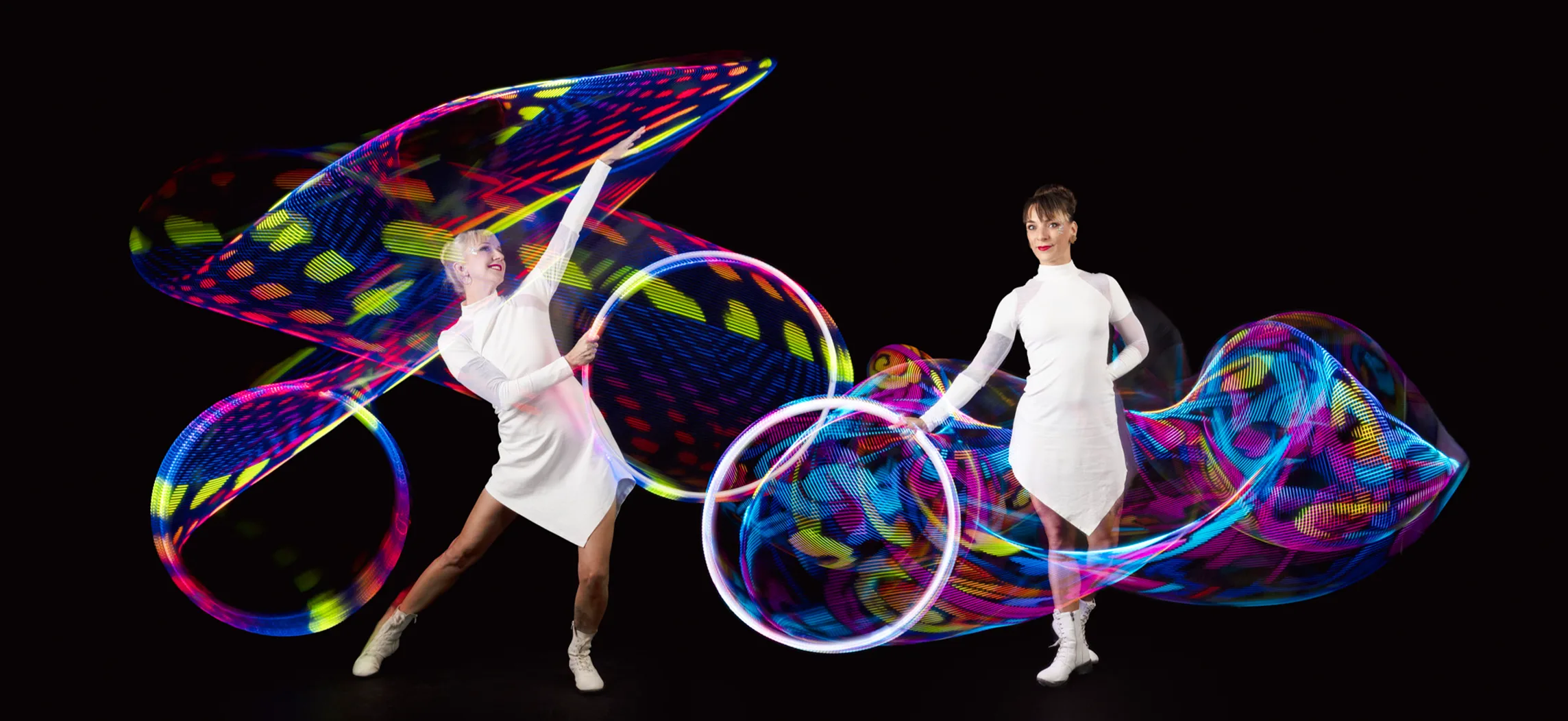 Jonglerie lumineuse et danse contemporaine, un duo mêlant agrès LED et mouvement.